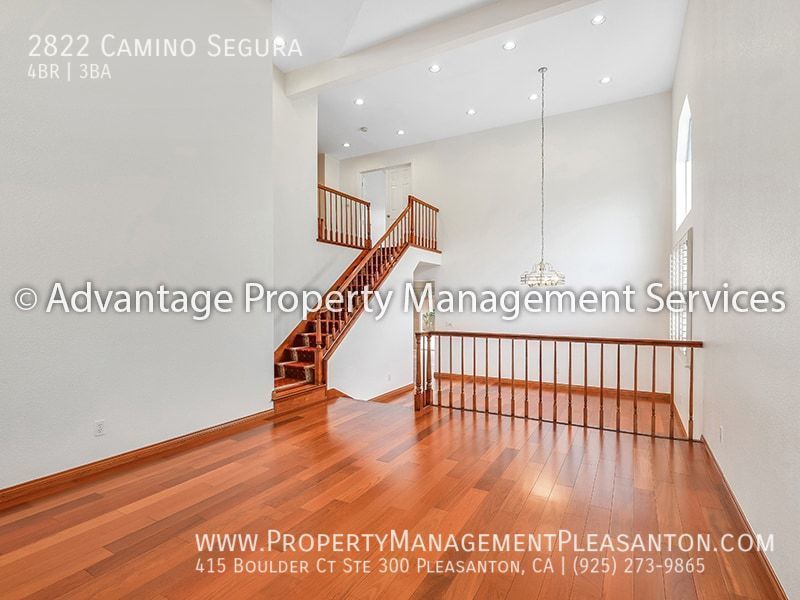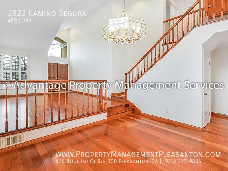 Come to see this spacious 4 bedroom, 3 bathroom, 2,420 sq. ft. house with solar, located off of Valley Ave. in Pleasanton. The home opens into a large formal living room and dining room with vaulted ceilings and hardwood floors throughout. Then you'll enter the family room with a cozy fireplace and lots of light. Next to the family room is the kitchen featuring stainless steel appliances, granite countertops and plenty of storage space. One bedroom and one full bathroom with a walk-in shower are also located on the first floor. Upstairs you'll find the three bedrooms and two bathrooms. The master suite features two large closets and a beautiful bathroom with dual sinks, a soaking tub, and a walk-in shower. The property is complete with a large backyard that is perfect for entertaining and a 2-car garage.